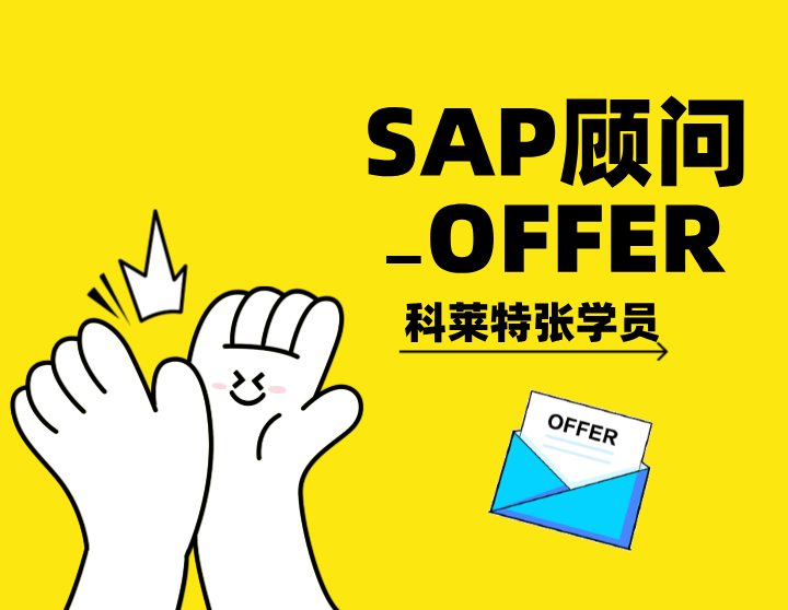 我很荣幸,遇到了科莱特,老师讲课风格幽默,深入浅出,让笨笨的我,领略到了SAP的魅力。面临找工作,科莱特老师们,贴心地准备了就业大礼包,我按要求复习课程内容,总结每次面试,顺利进项目了。